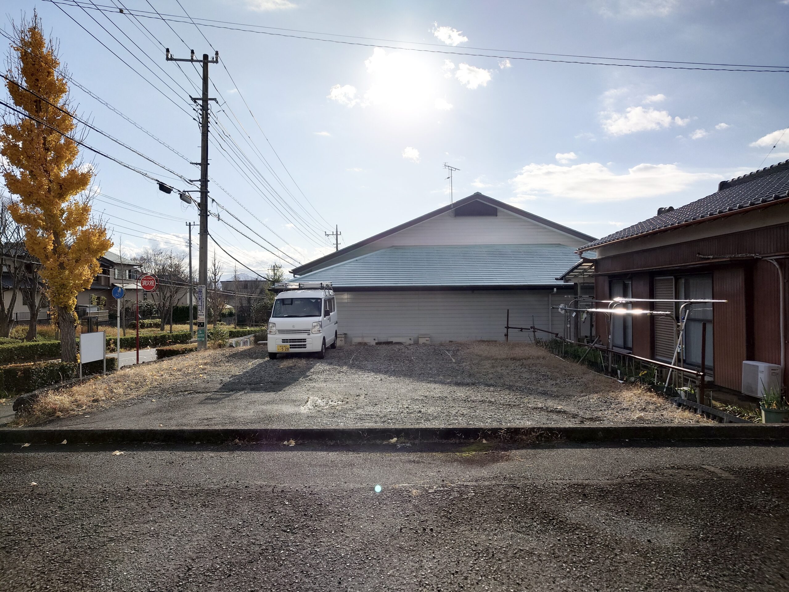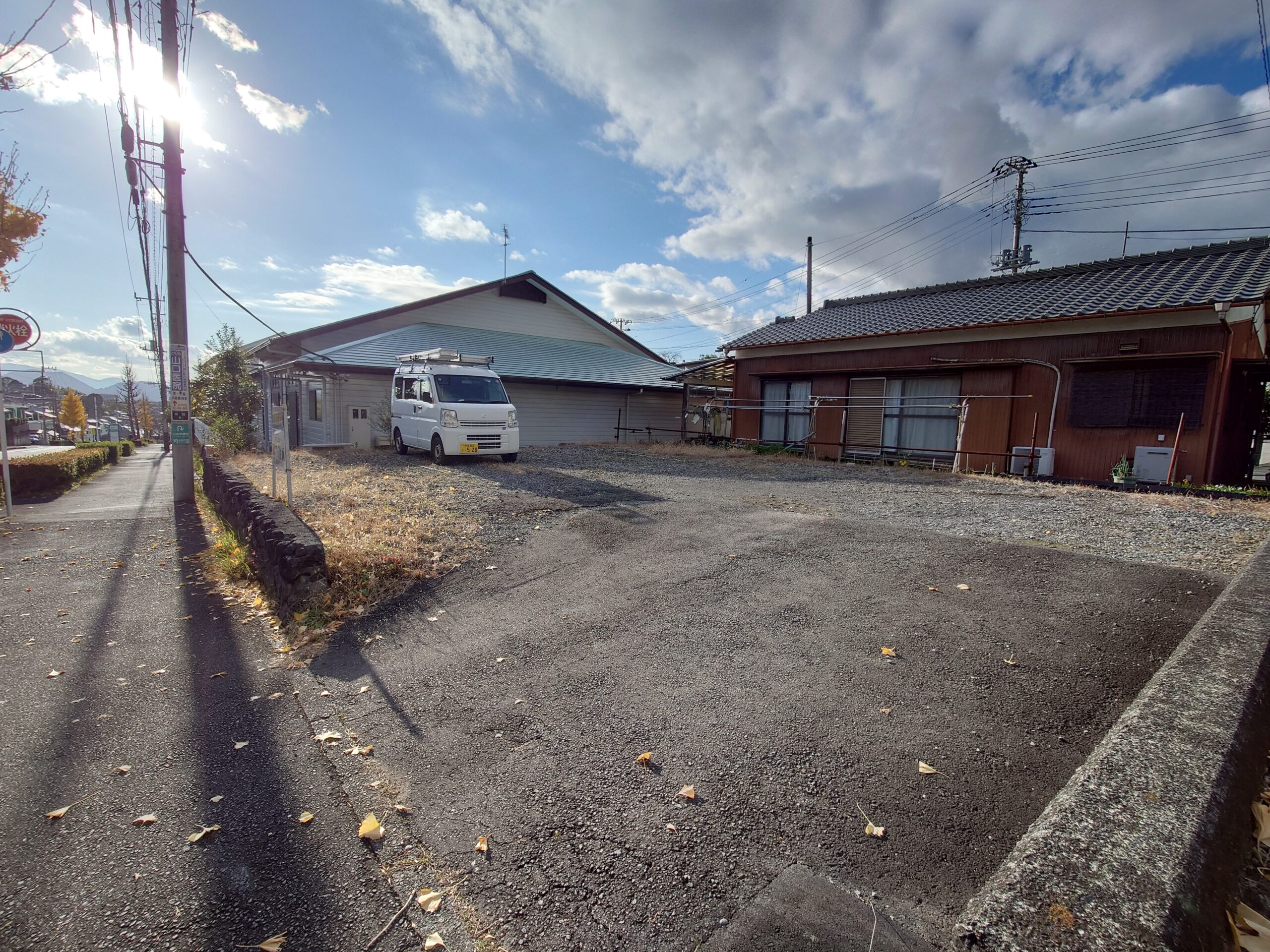 周囲には平屋のお家や公民館、駐車場があり、建物が建て込んでいないため、空が広く感じられる開放的な雰囲気です。日当たりや風通しもよく、明るくのびのびとした暮らしがイメージできます。